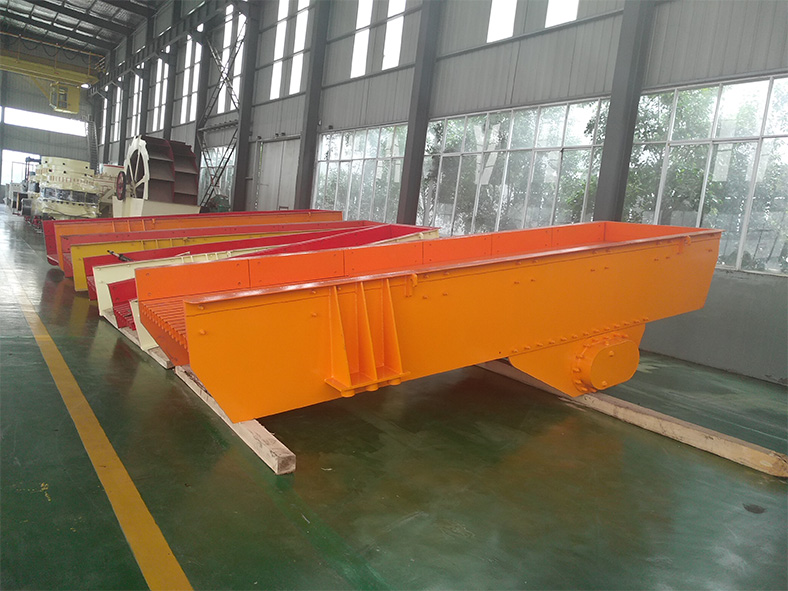 本公司生產的喂料機系列分為激振式喂料機與直線式喂料機兩種。激振式喂料機系列采用兩臺激振式電機,用戶可自由調整喂料機的振動頻率,從而完全控制石料的喂料速度,保證整條生產線的順暢運行。直線振動式給料機,具有振動平穩,工作可靠,壽命長等特點。可為碎石機械連續、均勻喂料,并對物料進行粗篩分。廣泛應用于選礦、建材、硅酸鹽和化學工業中的碎石、篩分聯合設備中。